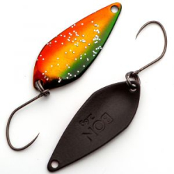 В серии BON — представлены блесны в весе 2.6, 3.2 и 3.8 грамма. Формы и расцветки блёсен разработаны профессиональными рыболовами-спортсменами, специализирующимися на форелевой ловле с учётом специфики на наших «платниках»! Размер блесны Troutland BON 3.2 - 33х13 мм.