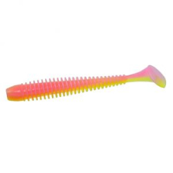 Mr. Swin – плавающая, съедобная, мягкая приманка виброхвост! Относится к «активным» приманкам об этом свидетельствует прогонистое, ребристое тело и пятачок в конце. Пятачок стоит, на тоненьком основании, что позволяет ему совершать активную игру. Тело приманки похоже больше, на тело червя или слага. Тело приманки имеет круглое сечение с кольцеобразными выступами. Приманка отлично ловит как хищную рыбу так и мирную. Зарекомендовала себя в ловле окуня, щуки, судака, леща.
