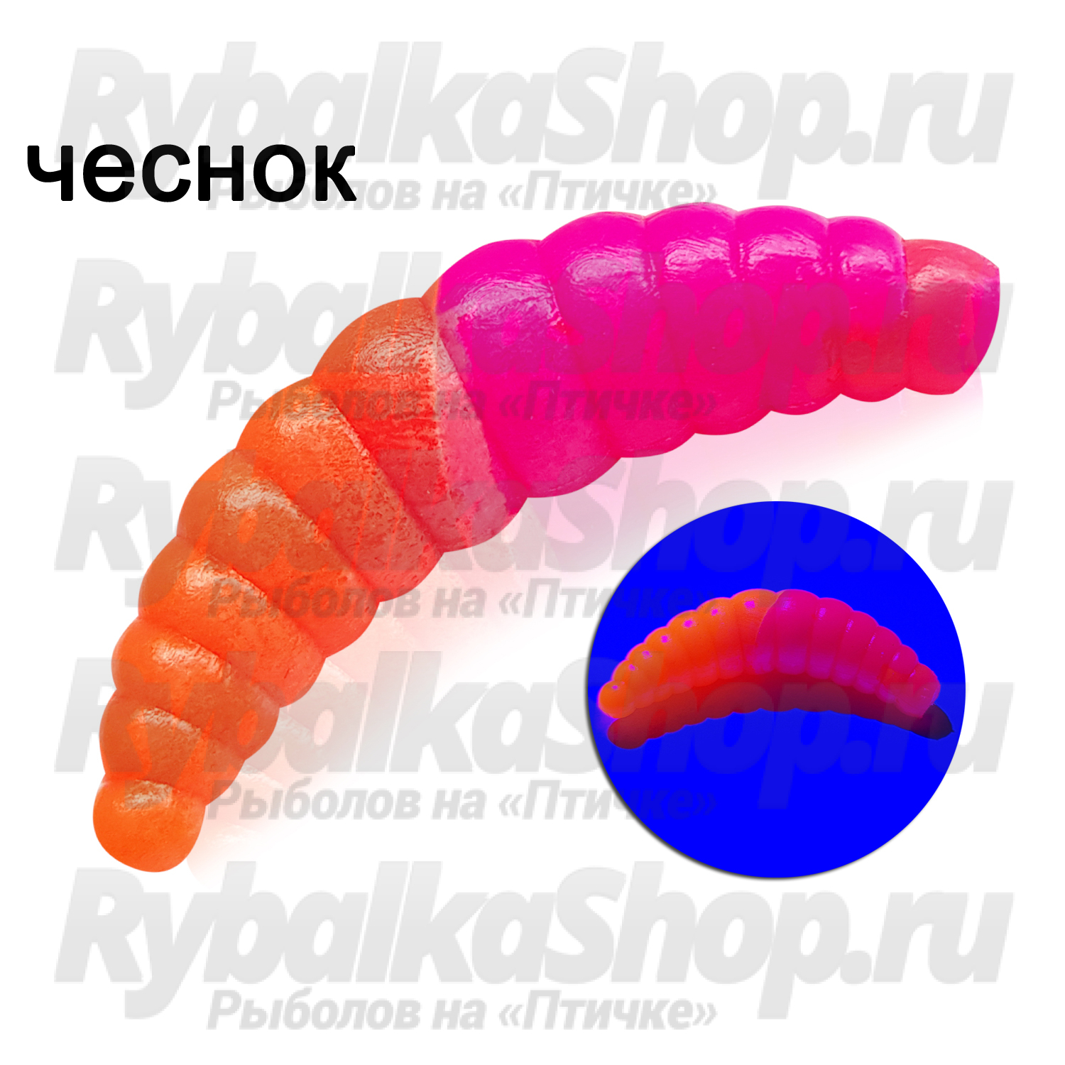 Силиконовая приманка Microfishing Magott 1,9" - 8шт Оранжевый-розовый Чеснок