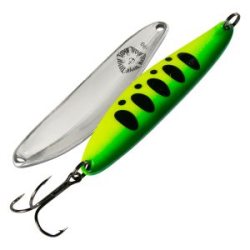 Приманка очень хорошо собирает активную форель в верхних слоях воды. Второй способ применения этой блесны – ловля у дна, даже на изрядной глубине она стабильно играет на малой скорости, но это больше относится к легким моделям. Самая тяжёлая же, вес которой составляет 4,3 грамма, отлично летит и позволяет обследовать большую акваторию на присутствие активной рыбы. Очень эффективными оказались легкие сбросы во время проводки.