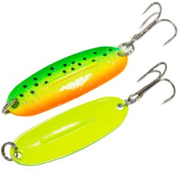 Boggy Urizun Spoon 30g - Тело блесны имеет форму обрезанного под большим углом цилиндра. Небольшой размер при приличной массе обеспечивает отличные полетные качества приманки. Блесна играет как при падении, так и при проводке. Игра блесны размеренная. При ускорении проводки блесна быстро поднимается к поверхности, что позволяет облавливать различные участки водоема. Приманка отлично работает как в соленой, так и в пресной воде.