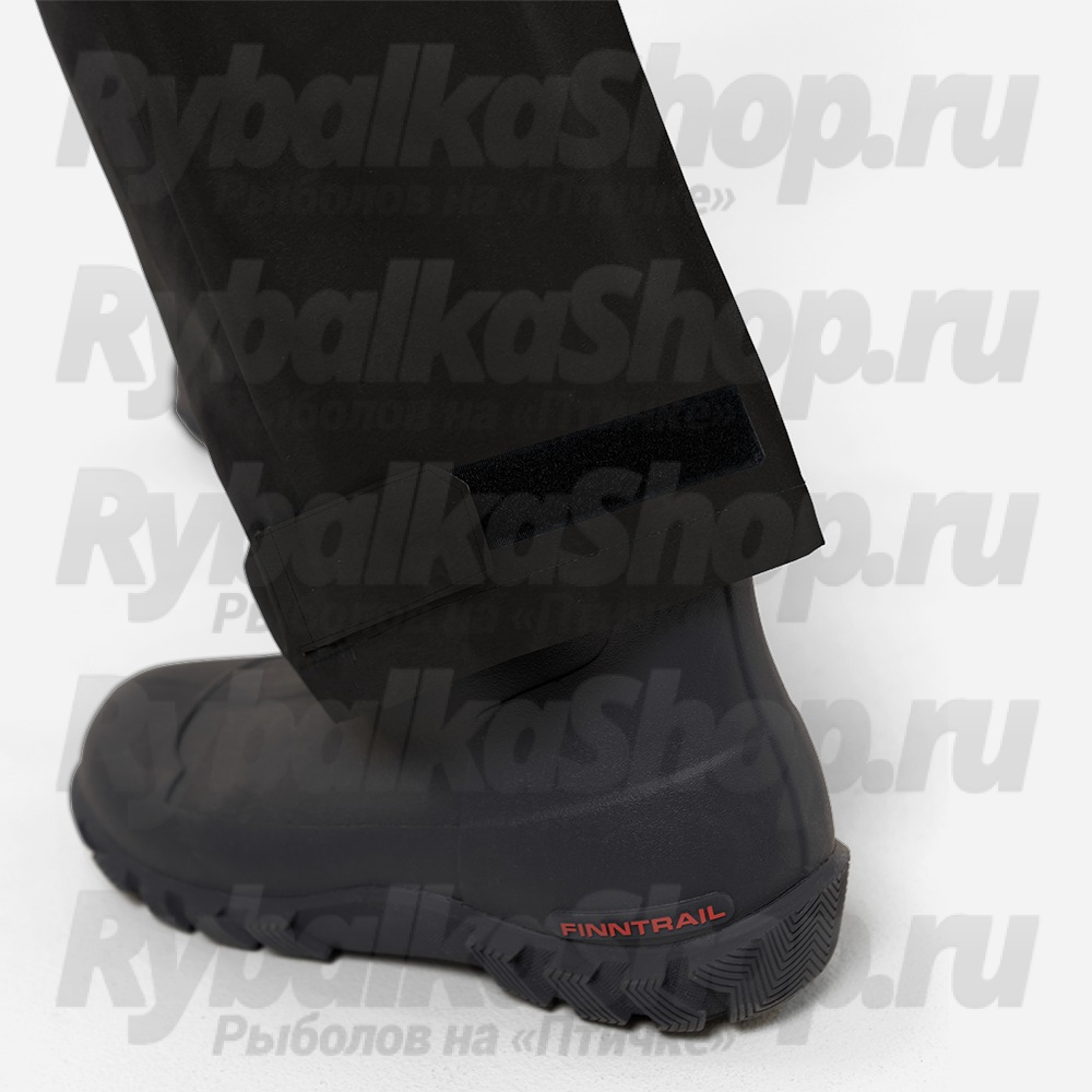 Брюки имеют два больших накладных набедренных кармана, регулировку объёма по низу брюк. Колени имеют 3D форму и не ограничивают в подвижности. Брюки оснащены высокой тёплой спинкой с подтяжками, регулируемыми по длине. Все швы и молнии костюма проклеены.