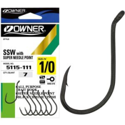 Owner SSW 5115 – серия мощных одинарных крючков, изготовленных из высококачественной углеродистой стали. Крючки Owner 5115 имеют широкий загиб, кованый поддев, отогнутое внутрь и в сторону жало, нормальной длины цевье с отогнутым наружу колечком для привязывания лески и защитное покрытие черного цвета. Owner 5115 с успехом используются в оснастках для ловли крупной рыбы. Идеальны для ловли лососевых в реках, морской рыбалки и троллинга с использованием мертвой рыбки. OwnerSSW используются также для ловли сома, судака, жереха, тарпона и других хищных рыб. Острейшее жало с эксклюзивной заточкой Super Needle Point и нормальной величины бородка гарантируют эффективное засечение и надежное удержание любой клюнувшей рыбы.