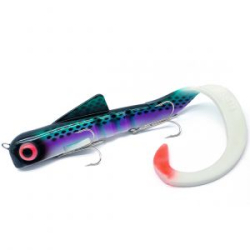 Namazu Al-Strasa - это линейка увесистых переднеогруженных блесен. Такая конструкция позволяет лепестку вращаться даже на свободном падении. Передний груз напоминает голову рыбки. Для визуального сходства на нем есть глаз со светящейся пленкой. Такая деталь может послужить дополнительным раздражающим фактором для рыбы. Лепесток вытянутый со сложным изгибом. Будет вращаться на медленных и быстрых проводках, не собьется на течении. Создаст мощные возмущения среды и блики, которые приманят потенциальную добычу издали. Сердечник - трубочка - длинный, способствует увеличению дистанции заброса и стабилизации блесны Namazu Al-Strasa при проводке. В нижней части есть цветной шарик, который может послужить точкой атаки. Тройник замаскирован нитями пряжи. Колебания такой "юбочки" вносят "изюминку" в игру, поддразнивают рыбу. Подойдут вращалки для охоты на зубастую щуку и крупных окуней