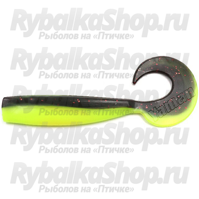 Силиконовая приманка Yaman Lazy Tail Shad 7" цвет #32 - Black Red Flake/Chartreuse (уп. 3 шт.)