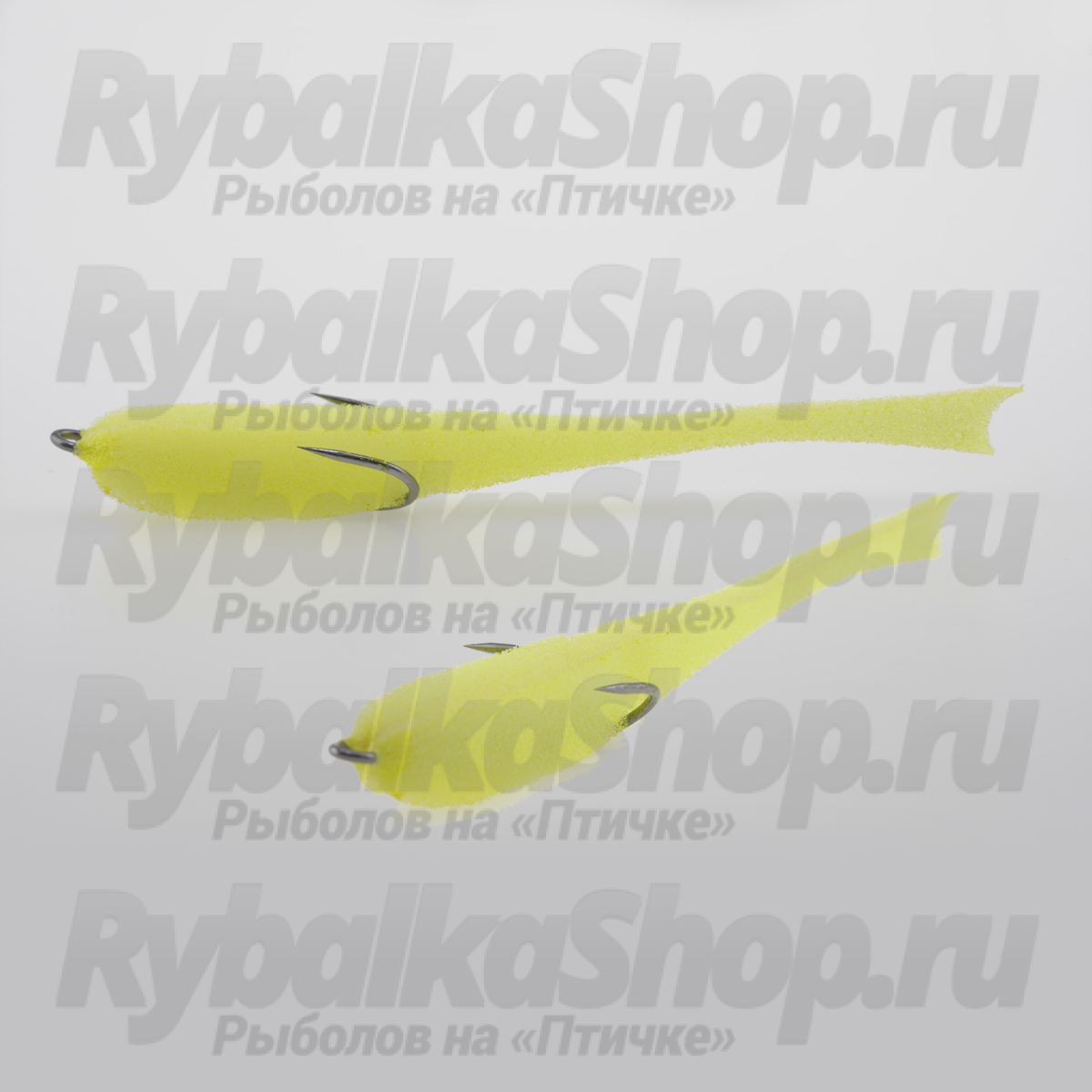Поролоновая рыбка имеет прогонистое тело со специальными вырезами. Форма приманки - морковка. Есть модели, светящиеся в ультрафиолете (УФ).