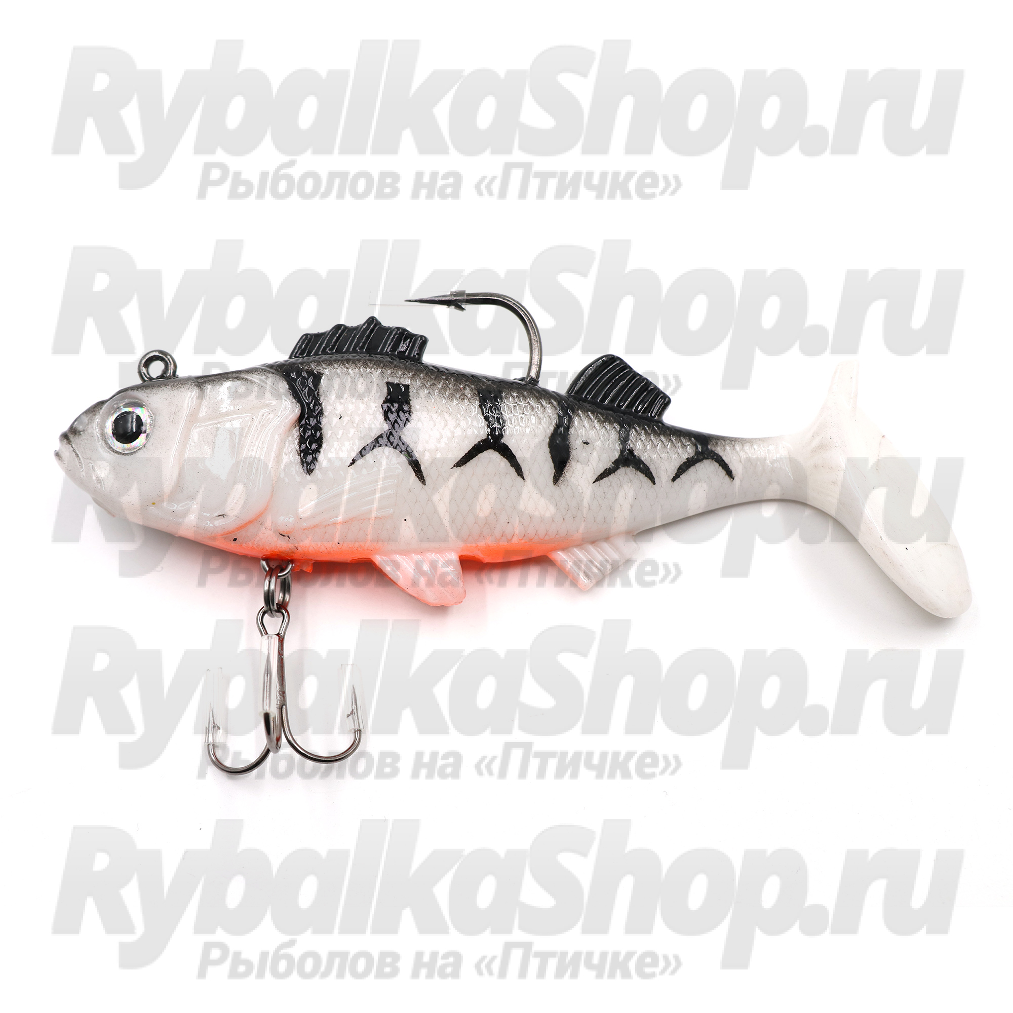 Силиконовая приманка Namazu PVC Perch 80мм с полупрозрачным телом, оснащенная тройником и одинарным крючком. Данный виброхвост изготовлен довольно качественно, не является съедобной приманкой. Отлично подойдет для ловли щуки. Позволяет облавливать довольно глубокие участки водоема.
