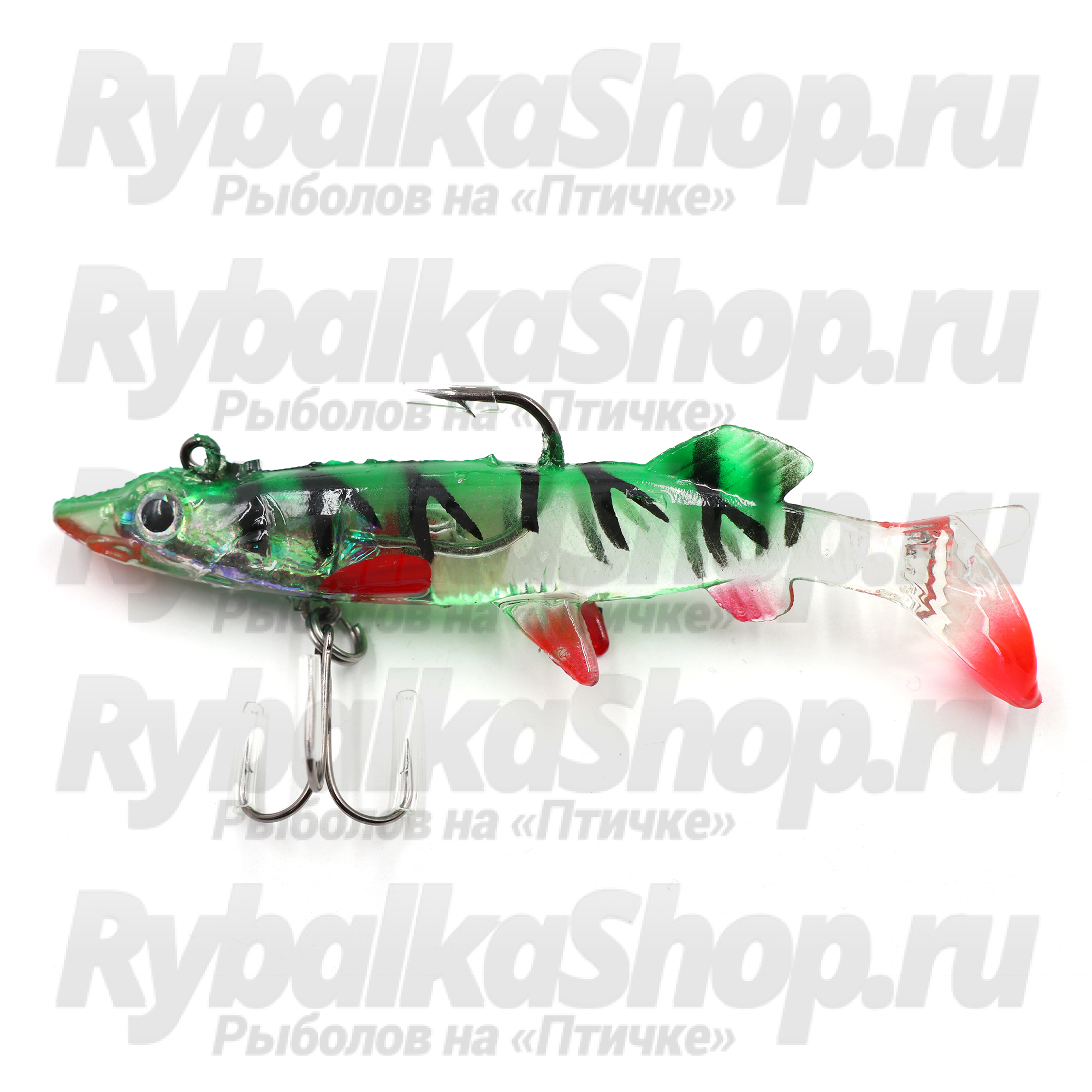 Силиконовая приманка Namazu PVC Pike 100мм с полупрозрачным телом, оснащенная тройником и одинарным крючком. Данный виброхвост изготовлен довольно качественно, не является съедобной приманкой. Отлично подойдет для ловли щуки. Позволяет облавливать довольно глубокие участки водоема.