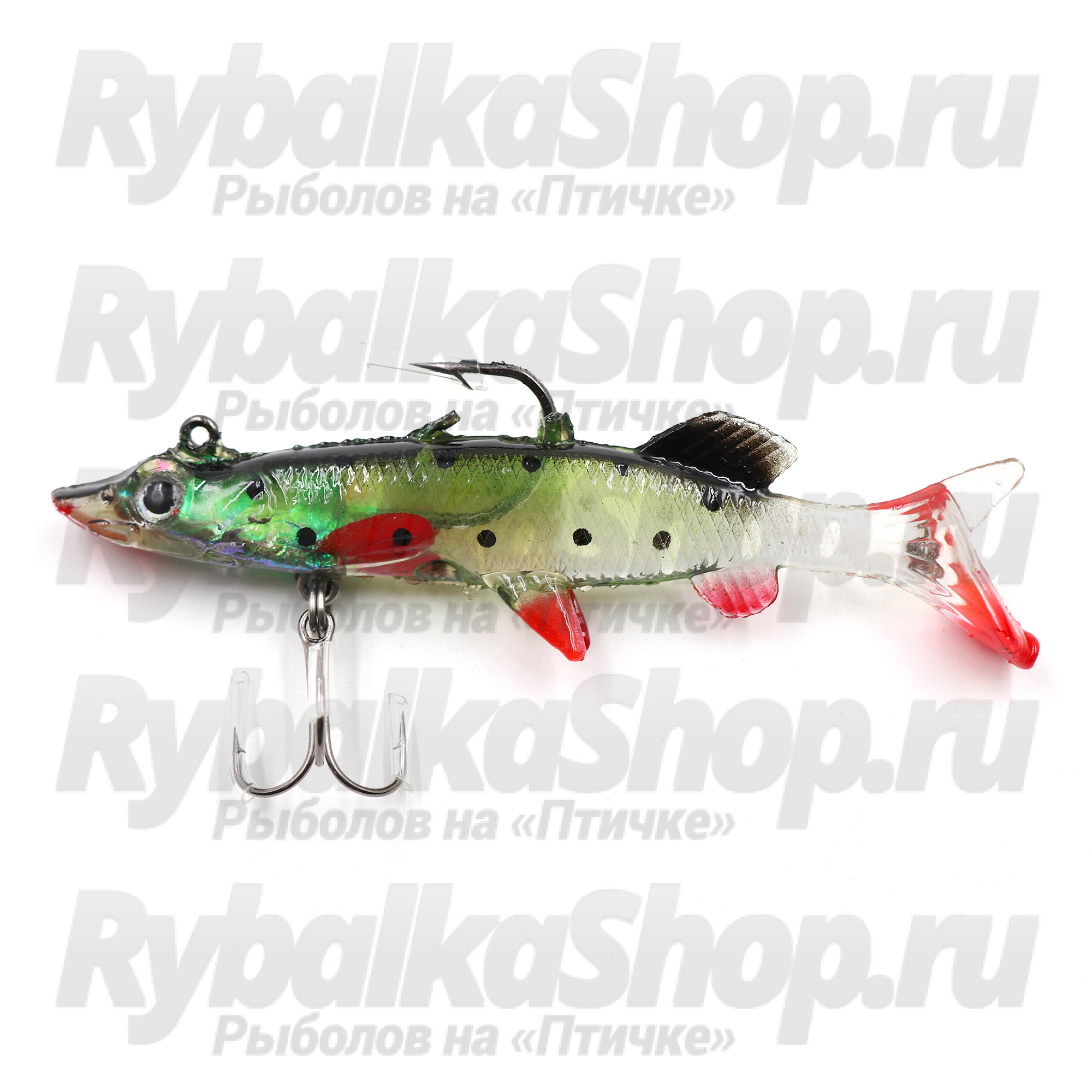 Силиконовая приманка Namazu PVC Pike 80мм с полупрозрачным телом, оснащенная тройником и одинарным крючком. Данный виброхвост изготовлен довольно качественно, не является съедобной приманкой. Отлично подойдет для ловли щуки. Позволяет облавливать довольно глубокие участки водоема.