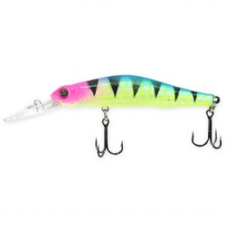 GLOT 75F имеет две разделенные боковой линией рельефные фактуры поверхности. Верхняя часть выполнена в виде ромбовидных насечек - чешуек, нижняя (вплоть до брюшка) в виде косых насечек. Головная часть воблера рельефно имитирует жаберные крышки рыбки, а 3D глаза дополняют реалистичность дизайна всей приманки.  Воблер оснащен системой баланса и шумовой камерой, которая издает довольно громкие звуки при проводке. Приманка оснащена двумя острыми тройниками соответствующего размера, надежной фурнитурой и силовыми заводными кольцами. У воблера современное качественное лакокрасочное покрытие и широкий выбор расцветок в каталоге.