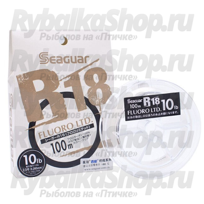 Леска флюорокарбоновая Seaguar R18 Fluoro LTD 100m 10Lb # 2,5 ( диа. 0,260 ; нагр. 4,5 кг.)
