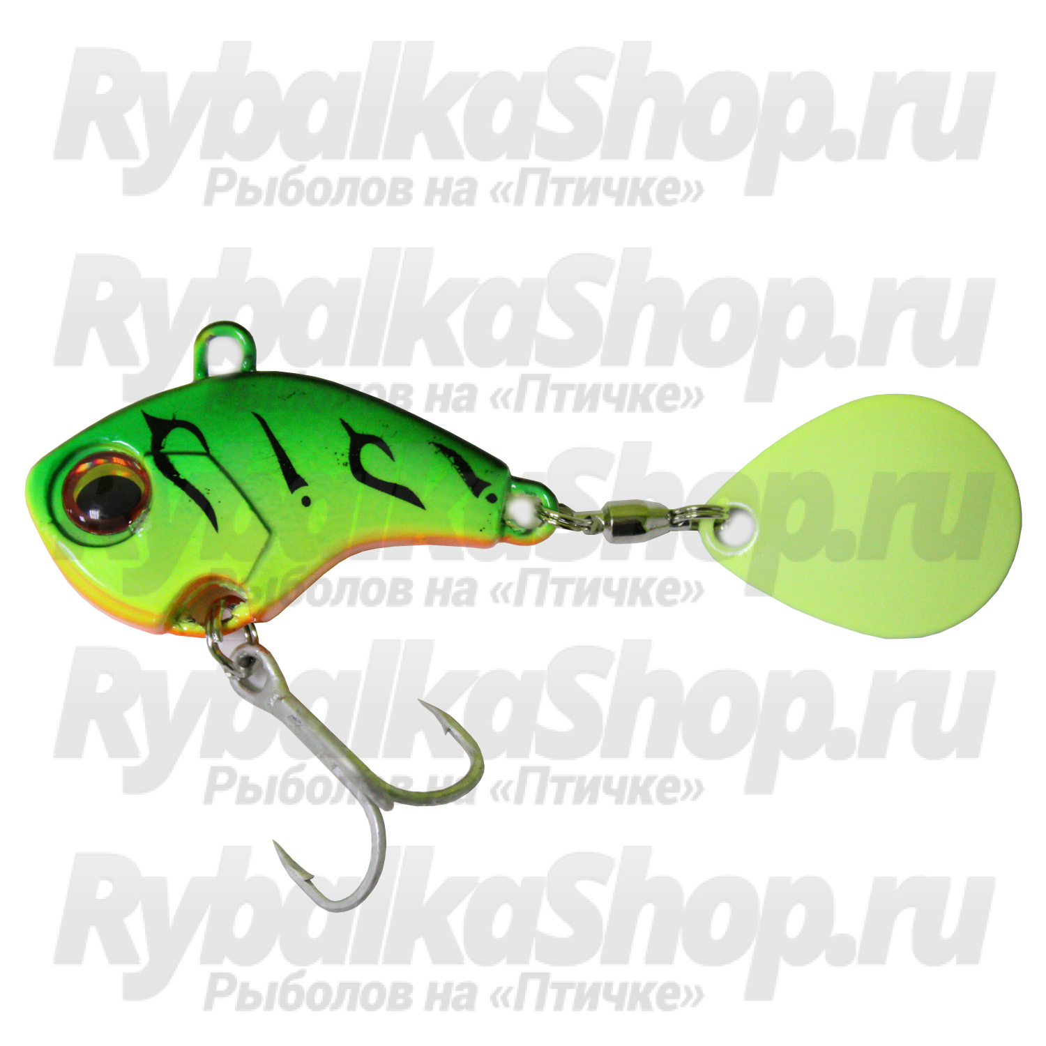 Совсем небольшое высокое и плоское тело приманки массой 18 грамм продолжается прицепами: кольцами, вертлюжком и округлым лепестком с подчеркнутым цветовым нюансом.