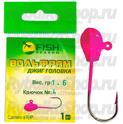 Джиг-головка Fish Season вольфрам SH, вес 1.6 гр, крючок №6, цвет Розовый (уп.1 шт)