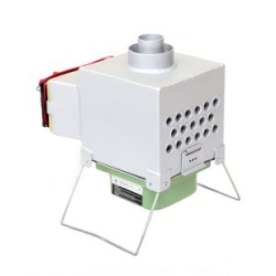 Устройство: Теплообменник состоит из металлического короба с проходящими сквозь него трубками, с оснащенным выходом под дымоходную трубу, складных ножек и входного отверстия для размещения под ним газовой плитки или горелки, вентилятора  (12В)
