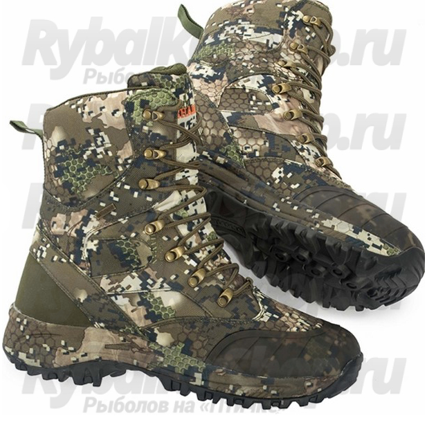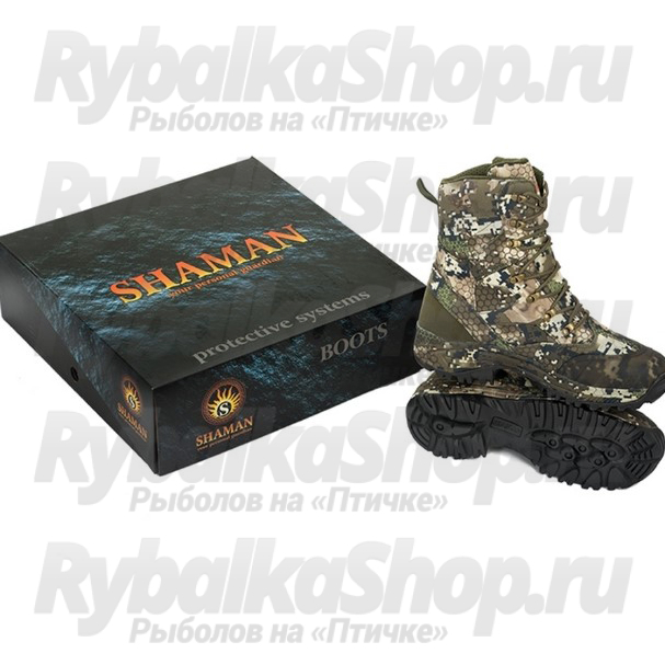 Охотничьи ботинки Shaman Salder цвет  Forest – высокие ботинки с надежной фиксаций стопы и цепкой подошвой. Подойдут для охоты, активного отдыха на природе, походов в горы в холодное время года (комфортная температура использования – от -5°С до -20°С. Выполнены в расцветке OPTICAL ILLUSION. Благодаря внешнему прочному материалу с водоотталкивающей пропиткой и дышащей мембране SHIELDTEX ногам будет сухо и удобно в любых условиях.  Обувь обладает специальной фиксацией и защитой голени, что очень важно во время ношения по неровному рельефу.