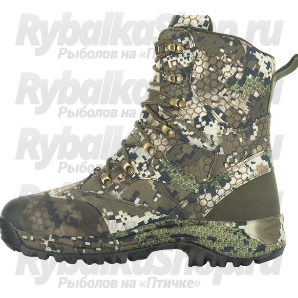 Охотничьи ботинки Shaman Salder цвет  Forest – высокие ботинки с надежной фиксаций стопы и цепкой подошвой. Подойдут для охоты, активного отдыха на природе, походов в горы в холодное время года (комфортная температура использования – от -5°С до -20°С. Выполнены в расцветке OPTICAL ILLUSION. Благодаря внешнему прочному материалу с водоотталкивающей пропиткой и дышащей мембране SHIELDTEX ногам будет сухо и удобно в любых условиях.  Обувь обладает специальной фиксацией и защитой голени, что очень важно во время ношения по неровному рельефу.