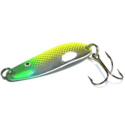 Блесны Spike Клео 10гр. 3019 выручат при плохом клеве. Их игра напоминает хаотичные движения упитанной рыбешки. Для визуального сходства продумана геометрия пластины, дизайн, у некоторых моделей нарисован глаз. Форма обуславливает стабильность колебаний уже на низкой скорости анимации. Приманка раздразнит и спровоцирует на атаку даже очень вялого, заторможенного хищника. При габаритах 4,7 см весит модель Spike Клео 3019 10 гр, что упрощает выполнение заброса.