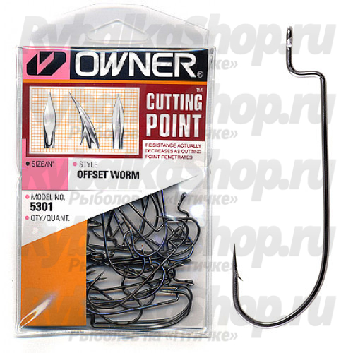 Офсетный крючок Owner 5301 специально спроектирован под мягкие пластиковые приманки с достаточно толстым телом, например, твистеры серии "magnum". В связи с этим он имеет ярко выраженную округлую конфигурацию как самого изгиба, так и цевья. С успехом используется в каролинской, техасской оснастках с грузами типа "пуля", а также в оснастке с тривиальным "ушастым" грузиком для ловли в глухом коряжнике. Как и крючки предыдущих серий, Rign'n Hook имеет самое стойкое покрытие Black Chrome™ и совершенную заточку жала Cutting Point™.