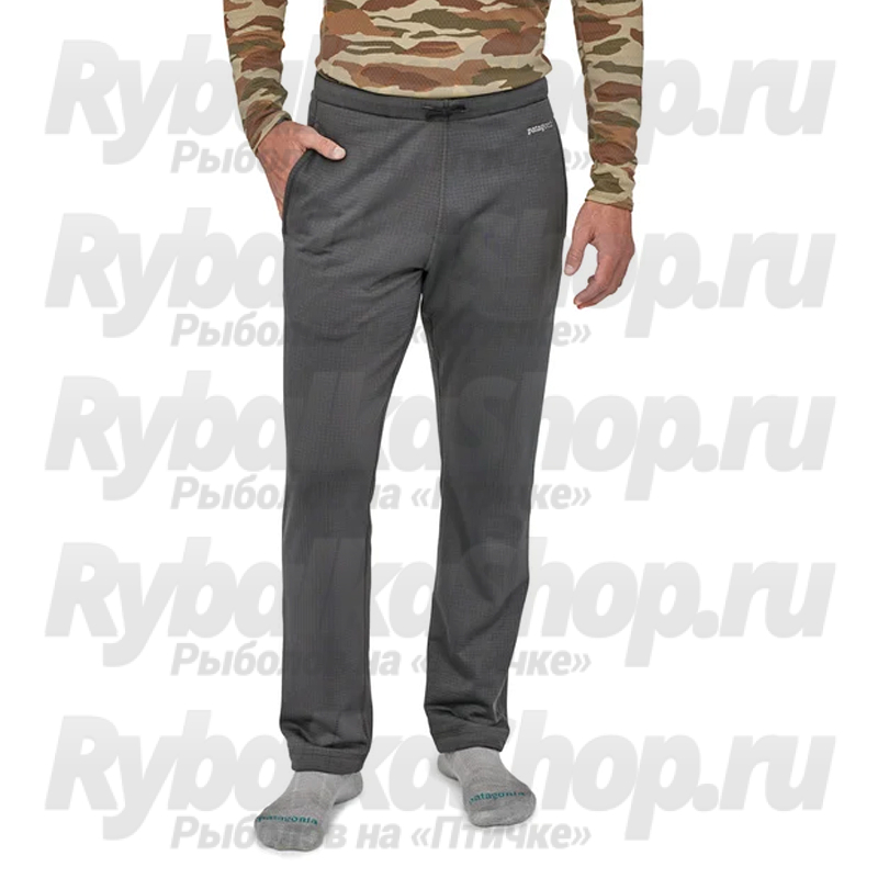 Брюки Patagonia M's R1 Pants, Forge Grey. Лёгкие универсальные брюки R1 подойдут как в качестве утепляющего слоя, так и отдельно. Изготовлены из приятного на ощупь эластичного материала, который не сковывает движений и хорошо отводит влагу от тела. Брюки не имеют выступающих швов и компактны в сложенном виде. Два передних кармана, эластичный пояс, регулируемый шнурком. Эластичная, дышащая ткань R1® обеспечивает превосходное тепло, отводит влагу и обеспечивает комфорт при контакте с кожей.