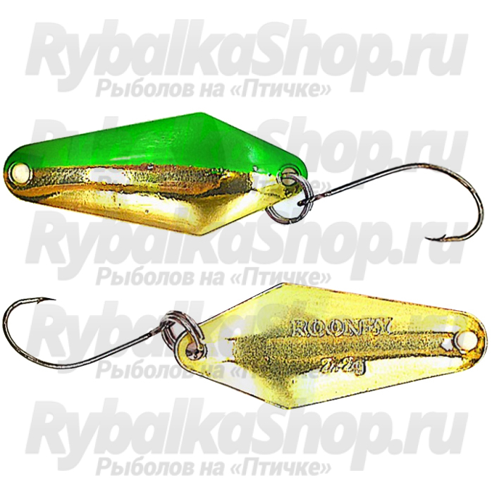 Лепесток блесен Grows Culture Rooney имеет чуть вытянутую ромбовидную форму со скругленными концами. Блесна оснащена одинарным крючком через заводное кольцо. При желании можно переоснастить блесну подходящим именно вам и вашей рыбе безбородым одинарником.