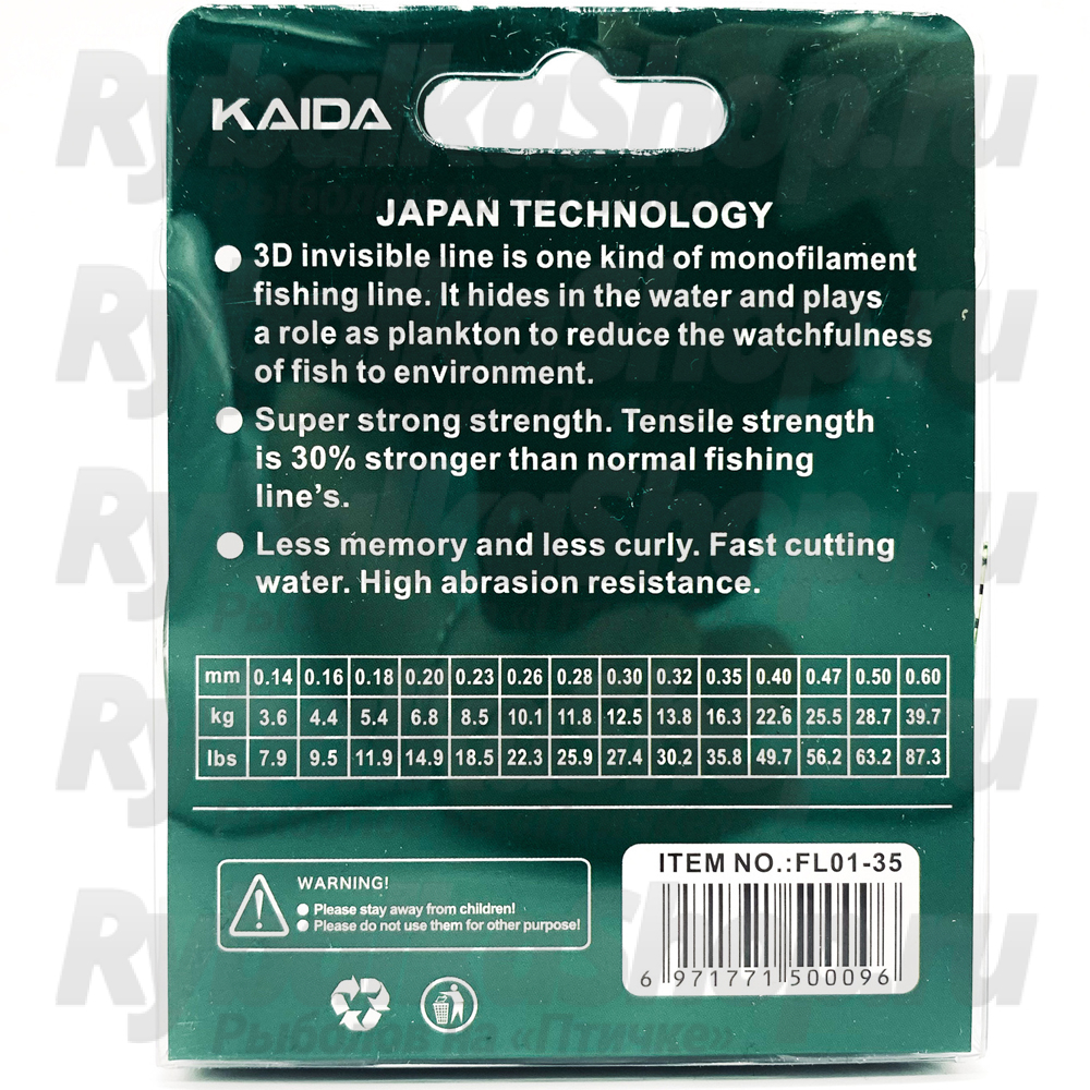 Kaida 3D Invisible Monster 100m - качественная бюджетная леска. Она создавалась для любителей поплавочной и донной ловли, а также подойдет для спиннинга. Мононить послужит не только как основная леска, но и как материал для изготовления поводков. Эта серия отличается хорошей стойкостью к износу и способностью выдерживать больше нагрузки. Также у нее небольшая растяжимость, за счет чего более высокая чувствительность. Многоцветная камуфляжная окраска маскирует леску Invisible 3D, делая оснастку почти незаметной на фоне речного дна.