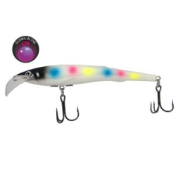 LureMax Stinka 130F MDR - воблер с седловидной лопаткой специально разработан для троллинга судака, озерной кумжи и лосося. Благодаря форме носовой лопасти и специальной балансировке, Stinka при проводке время от времени совершает броски в сторону, что провоцирует лососевых рыб на поклевку. Воблер «тихий» и не настораживает рыбу стуком металлических шариков, что бывает особенно важно при ловле осторожной рыбы. Приманка продемонстрировала хорошие результаты на водоемах Северо-Запада России.