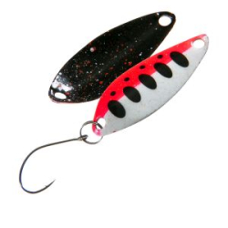 В спинном плавнике, изготовленном из латуни, имеется три отверстия. В зависимости от того, в которое вставлена застежка, игра приманки Merbu будет различной.