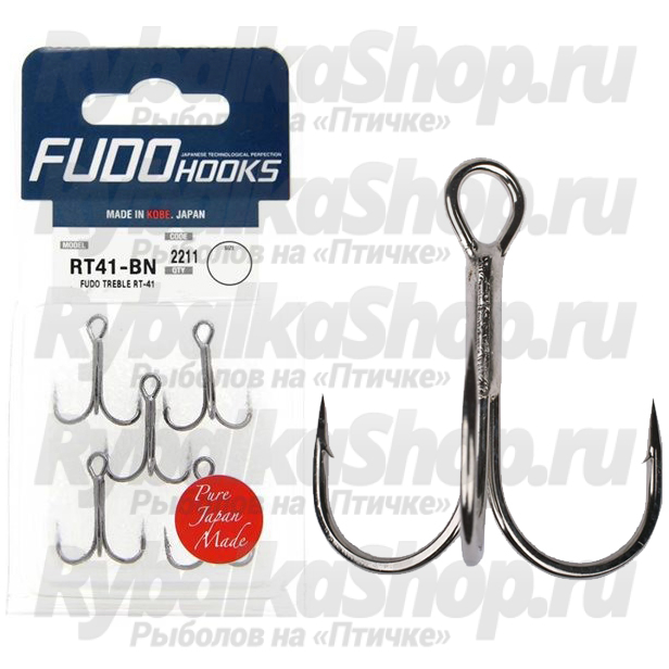 Тройной крючок Fudo RT41-BN 2211 - высококачественный тройной крючок с ушком для привязывания лески. Классические пропорции и классический изгиб, подходит для любых видов ловли и для оснащение разных типов приманок. Цвет - черный никель.