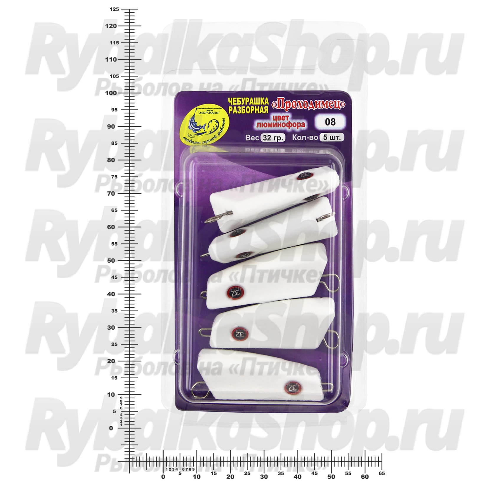 Мормыш Груз крашеный разборная чебурашка "ПРОХОДИМЕЦ" 32 гр., цвет 08-люминисцентный белый