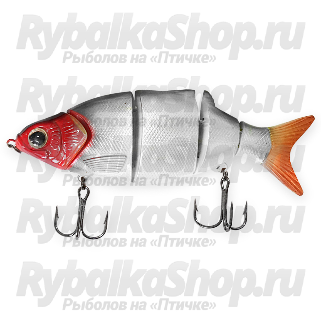 Обтекаемый дизайн корпуса, поделенный на секции с текстильными ультрапрочными вставками, имитирует реалистичное S-образное передвижение рыбы в воде, 3D глаза и раскрас, максимально приближенный к натуральному, делают приманку неотличимой от настоящей для хищных рыб