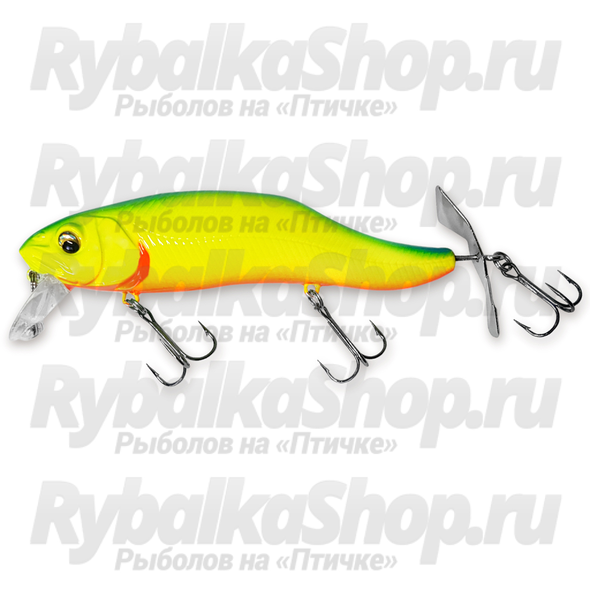 Длина воблера составляет 120 мм: на такую приманку уже покусится не каждая мелочь, а вот для трофея этот размер не помеха. Воблер подойдет для применения на разных типах водоемов и разных хищников. Он сможет соблазнить своей вибрацией пропеллера жереха, судака, щуку, крупного окуня.