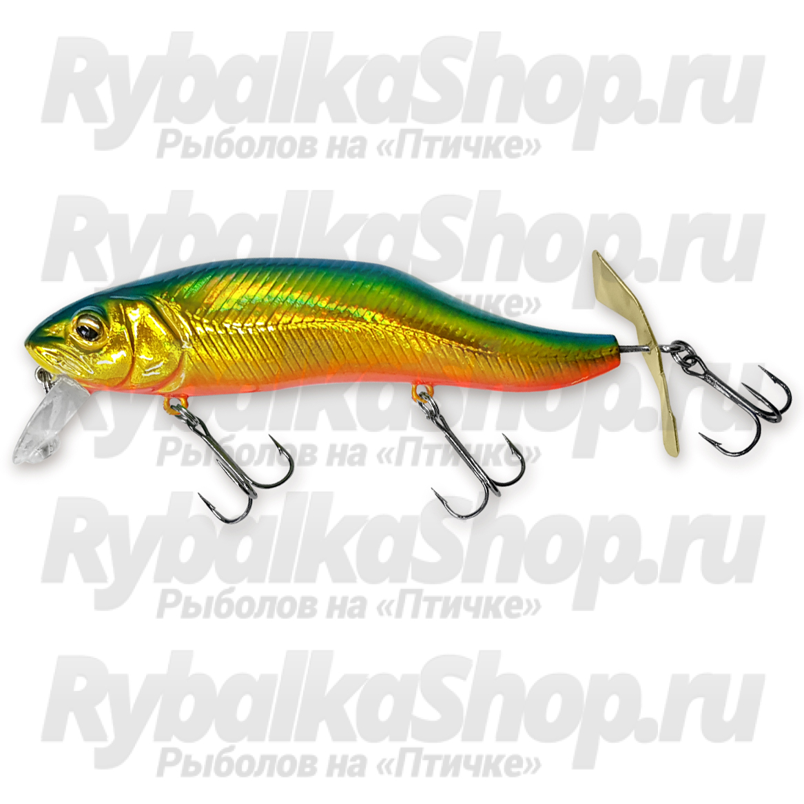 Длина воблера составляет 120 мм: на такую приманку уже покусится не каждая мелочь, а вот для трофея этот размер не помеха. Воблер подойдет для применения на разных типах водоемов и разных хищников. Он сможет соблазнить своей вибрацией пропеллера жереха, судака, щуку, крупного окуня.