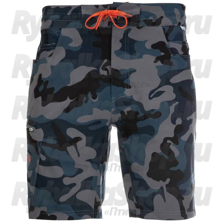 Описание Simms Seamount Board Shorts, Woodland Camo Storm