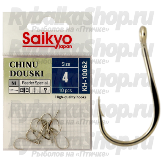Крючки Saikyo KH-10062 NI Chinu Douski из особо прочной проволоки с расплющенным граненым цевьем, увеличивающим жесткость и устойчивость к разгибанию, для ловли на фидерные оснастки. Защитное никелированое покрытие позволяет использовать их на морской рыбалке в снасти «самодур» (сабики).