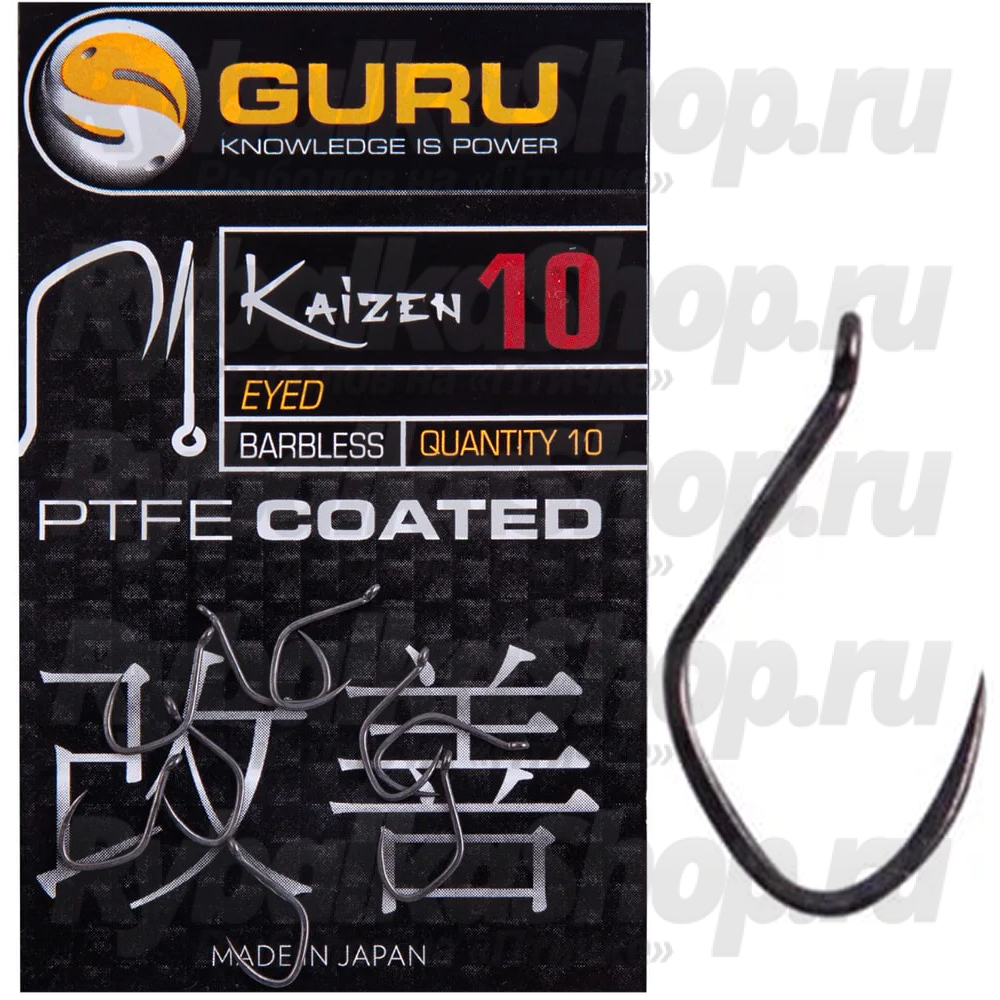 Крючок без бородки Guru Kaizen Eyed, как следует из названия, является суперпопулярным крючком Kaizen с ушком вместо лопатки, что делает его идеальным для многих видов рыбалки. Используемый стиль не имеет значения, будь то штекерная ловля большого карпа или ловля с волосяной оснасткой на червя.