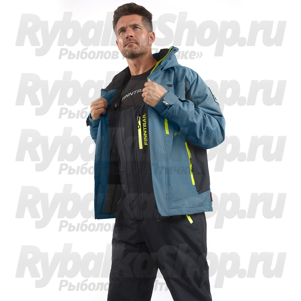 Новая технологичная модель утепленного костюма Finntrail Atlas 3440 Blue_N с высокой степенью защиты от воды и грязи выполнена из износостойкой 2,5-слойной ткани Ripstop с мембраной HARD-TEX®.