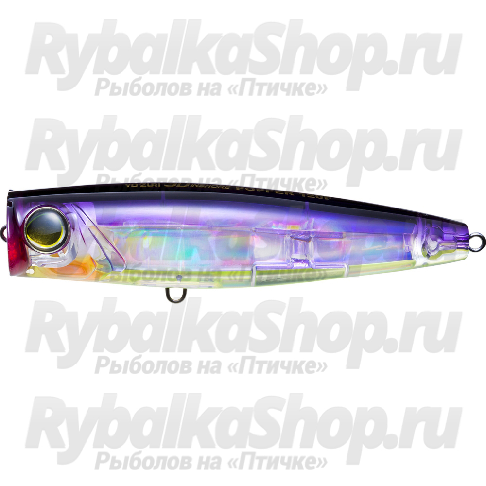 Воблер Yo-Zuri 3D Inshore Popper 120F R1412 По замыслу разработчиков бренда Yo-Zuri, призвание модели 3D Inshore Popper заключается в облавливании поверхности соленых и пресных акваторий. Корпус произведен из сверхпрочного пластикового материала с полупрозрачными стенками. Изнутри спрятана голографическая пластина, которая отвечает за заманчивые блики. Благодаря тщательно выверенной огрузке и фиксированному центру тяжести, поппер моментально включается в работу. У него динамичная, слегка хаотичная игра. Ротовая выемка захватывает большое количество воды, что порождает громкое бульканье, а также брызги и волновой след. За счет массы и вытянутой геометрии приманка дальнобойная. Заглубление "0+" дает возможность облавливать поросшие локации.