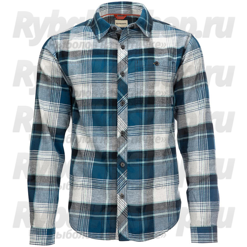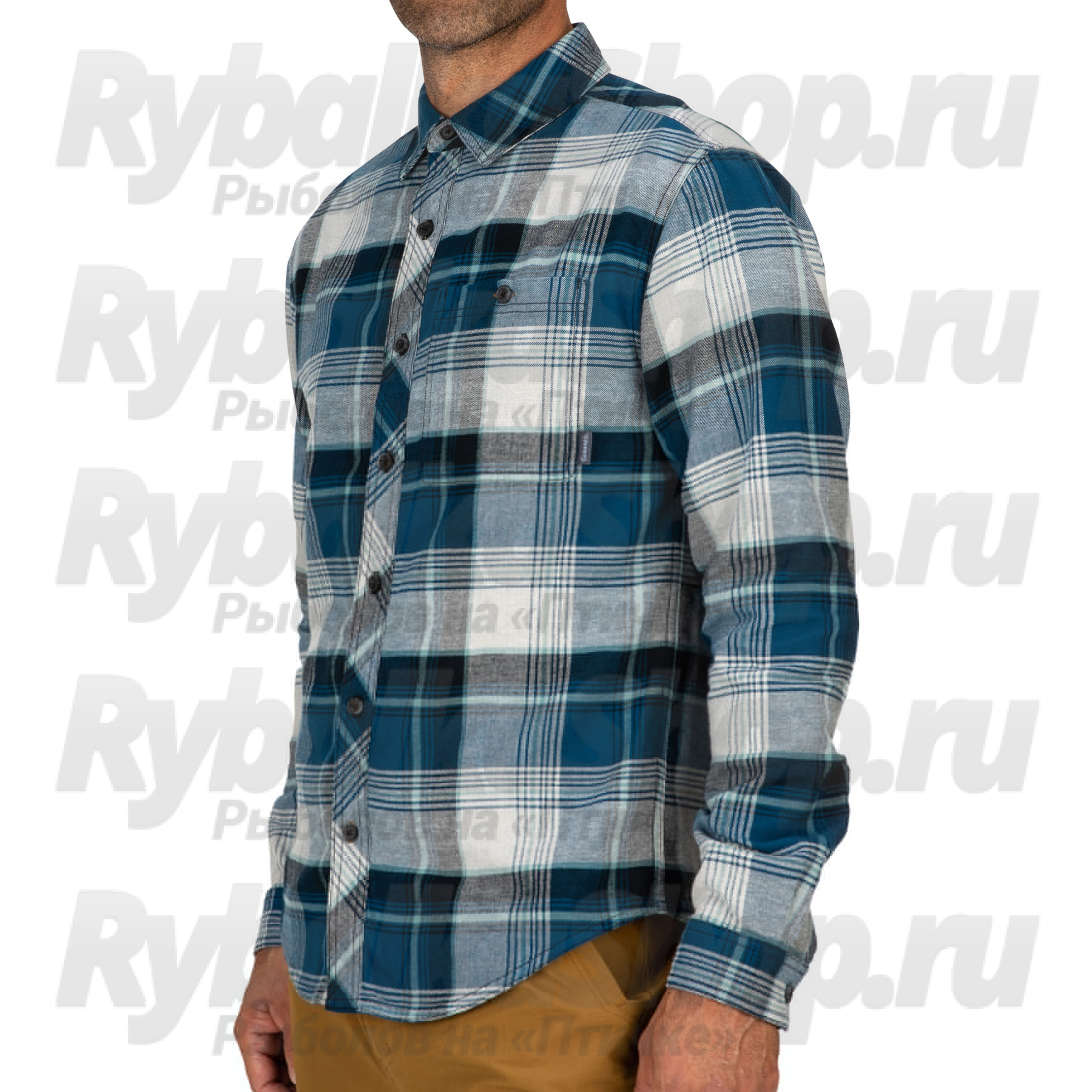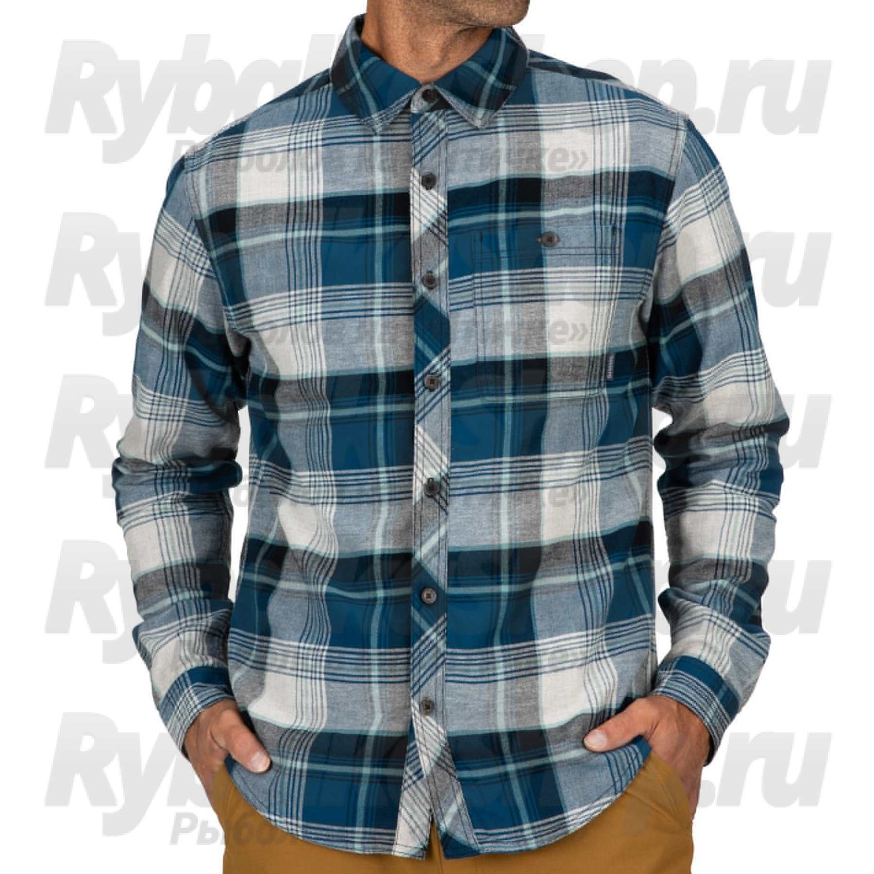 Стильная фланелевая рубашка Simms Dockwear Cotton Flannel, Atl Celadon Plaid с влагоотталкивающей пропиткой. Подойдет как для рыбалки, так и для города.
