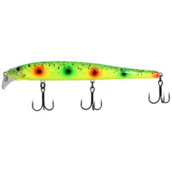 Длина Spike Карасик 2015 равна 5,2 см, масса 13 гр, что упрощает выполнение заброса. Лицевая сторона пластины имеет фактурное объемное глянцевое покрытие. Оно создает эффект чешуи и красивые блики при попадании света. Блесна оснащена тройным крючком незацепляйкой. Привлечет она не только любопытного окуня, но также и щучку.