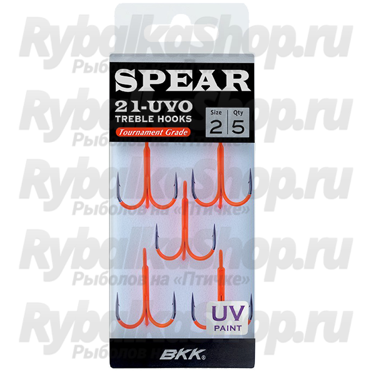 BKK Spear-21 UVO – это универсальный тройной крючок, подходящий для различных условий ловли и типов приманок: воблеров, блёсен, топвотеров. Он изготовлен из углеродистой стали BKK 81WV, которая выделяется прочностью и упругостью и способна без деформации выдержать сильное давление крупной рыбы. Кованость оптимального по длине стержня крючка увеличила его прочность на 20%. Округлая форма крючков и направленные вверх жала с бородкой обеспечивают наилучшую засекаемость рыбы и препятствуют сходам. Поверхность Spear-21 UVO имеет тефлоновое покрытие Super Slide, что делает крючок скользким и позволяет увереннее пробивать пасть рыбы. Также это покрытие наделяет крючок долговечностью и устойчивостью к коррозии от постоянного контакта с водой. Отличная острота крючка даже после нескольких пойманных рыб обеспечивается качественной заточкой. Флуоресцентная окраска тройника отлично светится под ультрафиолетом, что позволяет рыбе быстрее найти приманку и в некоторых случаях сконцентрировать свою атаку именно на крючке. Линейка Spear-21 UVO широка и представлена преимущественно небольшими моделями, подходящими для оснащения некрупных воблеров и блесен.