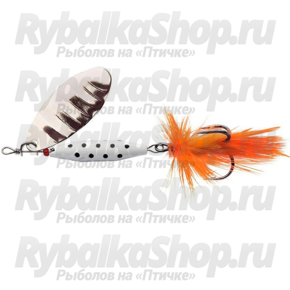 Белый в черную точку сердечник - "визитная карточка" дизайна моделей серии Reflex White. Специалисты Abu Garcia также просчитали форму и конструкцию этой детали так, чтобы вращалки без труда долетали до отдаленных точек при броске даже при наличии ветра (как пишут сами производители). Сердечник стабилизирует и игру. Лепесток начинает вращение при легкой потяжке удилища. С анимацией блесны справится даже новичок. Интенсивные вибрации выманят рыбу из укрытий. Дополнительно поддразнивают хищника колебания пушистого оперения на тройнике. Серия вращалок от Abu Garcia под названием Reflex White будет результативна при охоте на котлового и одиночного, более крупного хищника. Уловом с такими блеснами может стать и вездесущий окунь, и осторожный голавль, жерех, разные виды лососевых, включая форель, кумжу, ленка, а также зубастая щука.
