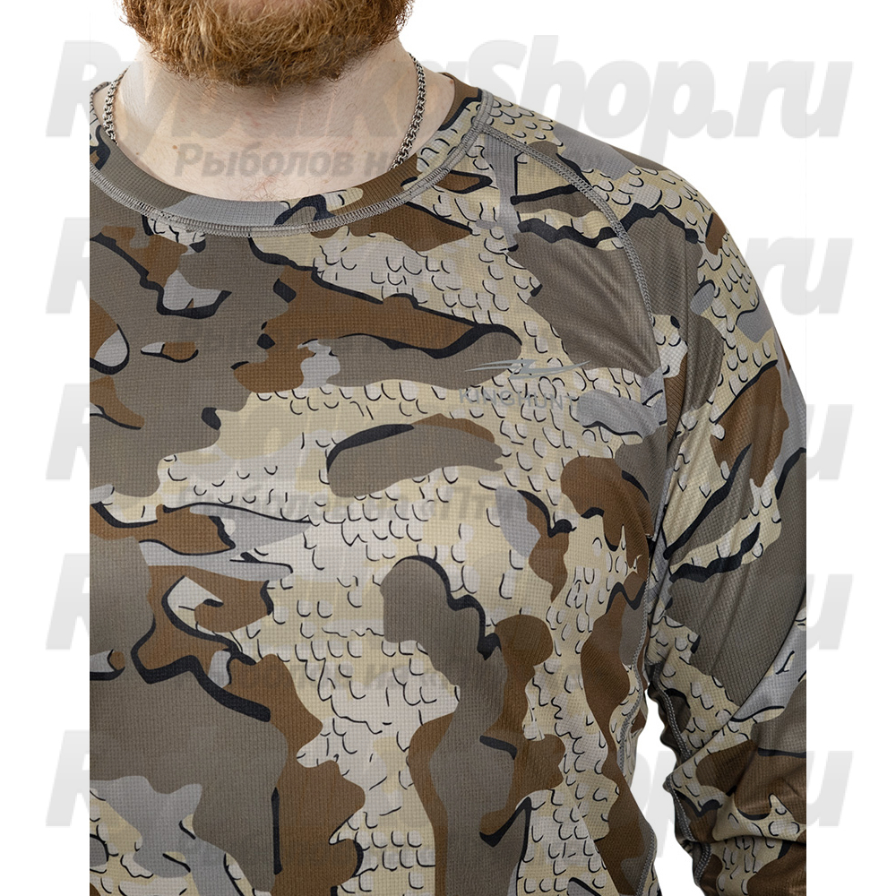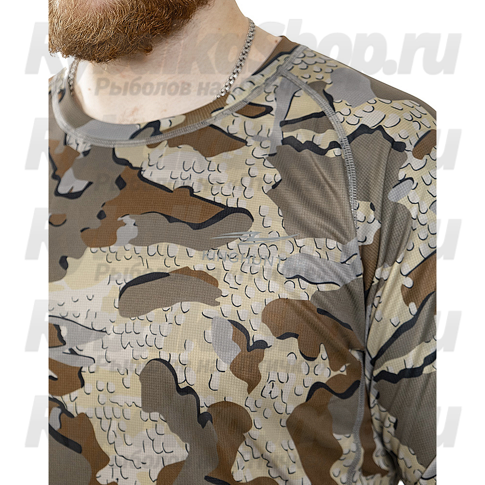 Футболка King Hunter PROTECTION — функциональная футболка с длинным рукавом может использоваться в качестве нижнего влагоотводящего слоя, так и как самостоятельная единица в теплое время года. Материал футболки — полиэстер впитывает излишнюю влагу и мгновенно высыхает.