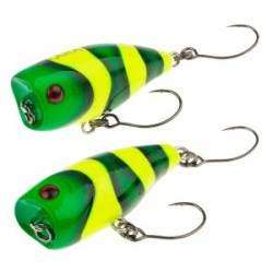 Передний тройной крючок, установленный на вертлюге, легко справится с неожиданной поклевкой крупной рыбы. В хвостовой части поппера Saltiga Pop Star установлен прочный и надежный тройной крючок из толстой кованой проволоки, который с легкостью глубоко просечет любую рыбу.