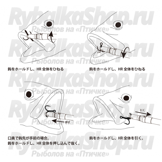 - Режим HOLD - Фиксирует крючок в захвате намертво для дальнейшего его проталкивания, выдергивания или проворачивания. Подходит как для одинарных, так и для тройных крючков.