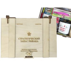 «Стратегический запас рыбака» от Mottomo - желанный подарок для настоящего рыболова! Сувенирный бокс из фанеры, наполненный разнообразными уловистыми приманками универсального назначения, которые не позволят остаться без рыбы на любом водоеме. Набор также включает в себя незаменимый на рыбалке атрибут – это кружка из высоколегированной стали и счастливый талисман рыбака, который во много раз повысит Вашу рыболовную карму.