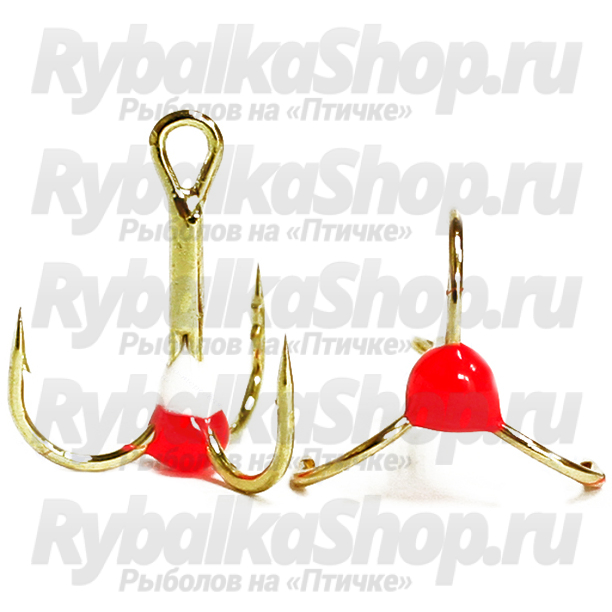 Крючки ''Тройник ''Капля'' №8, Золото, цвет 05 бело-красный, VD-092C (BN)'', 10 шт/уп