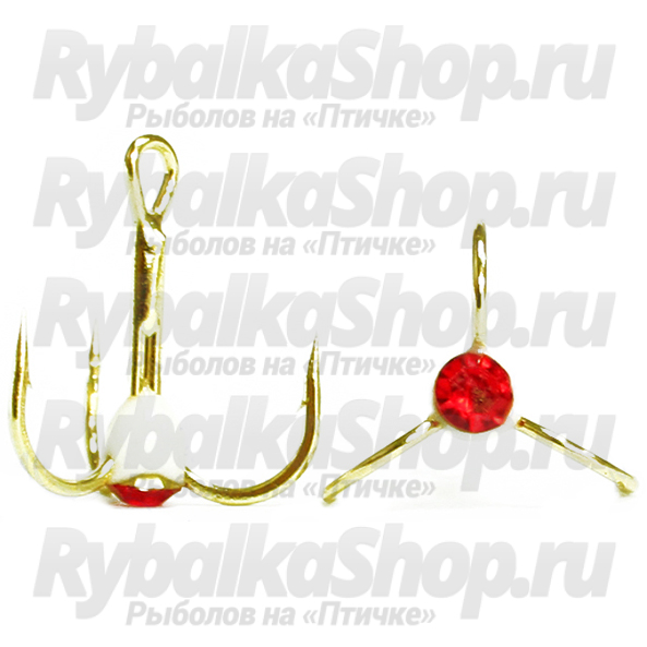 Крючки ''Тройник ''Капля'' №8, Золото, цвет 09 люм.+красн. страз, VD-092C (BN)'', 10 шт/уп
