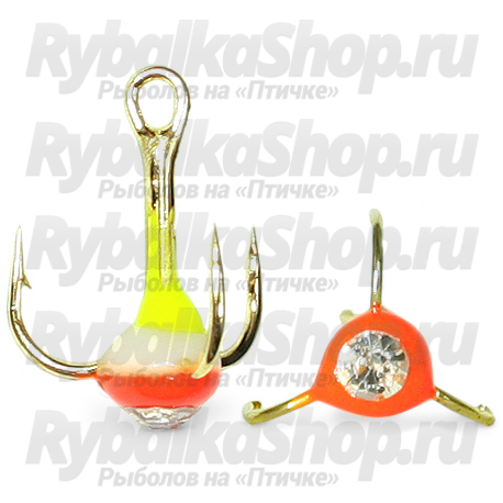 Крючки ''Тройник ''Капля'' №8, Золото, цвет 35 желто-люминисцентно-оранжевый+белый страз, VD-092C (BN)", 10 шт/уп