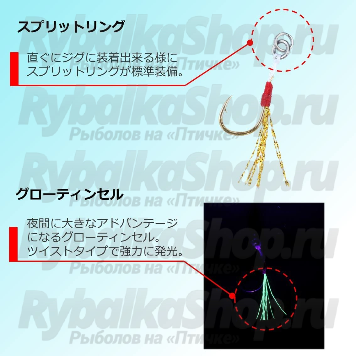 Крючки Ассисты Daiwa Shore Jig Assist Super Light Glow tinsel изготовлены из высокоуглеродистой стали, что обеспечивает высокую прочность и жесткость крючков. Мерцающие волокна люрекса делают приманку привлекательнее и заметнее для хищника, и стимулируют поклевку.