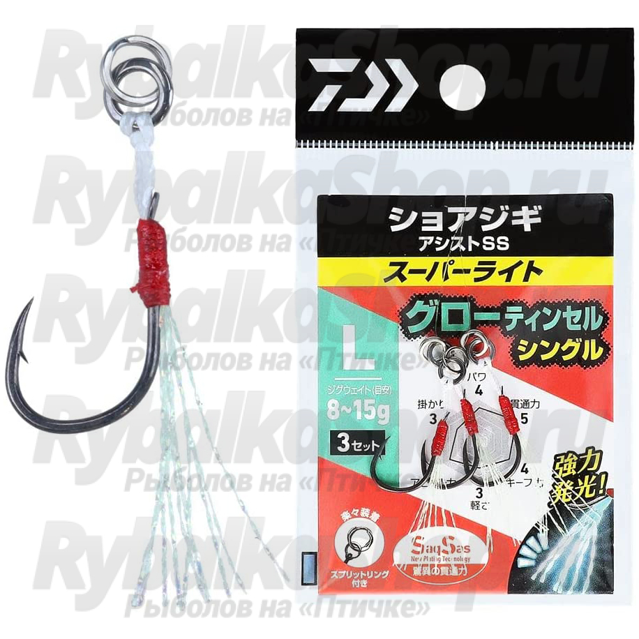 Крючки Ассисты Daiwa Shore Jig Assist Super Light Glow tinsel изготовлены из высокоуглеродистой стали, что обеспечивает высокую прочность и жесткость крючков. Мерцающие волокна люрекса делают приманку привлекательнее и заметнее для хищника, и стимулируют поклевку.